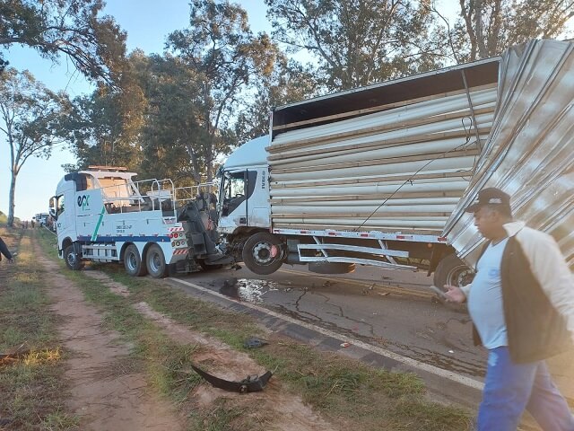 Estavam envolvidos no acidente um caminhão da marca Iveco e um caminhão Ford. Ao chegarem ao local, os militares constataram que as vítimas já haviam sido atendidas e removidas pela concessionária responsável pela rodovia, sem ferimentos graves.