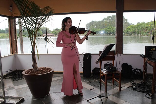 Em sua apresentação, a violinista Alessandra Abreu homenageou as produtoras e demais mulheres presentes no evento com a canção “Maria, Maria”, de Milton Nascimento