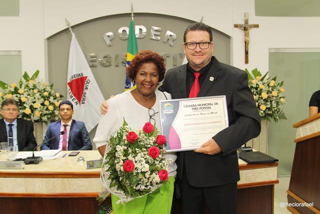Após leitura do resumo da biografia das agraciadas, cada uma delas recebeu o Certificado de Honra ao Mérito entregue pelo vereador que propôs a homenagem. E se dirigiu espontaneamente à tribuna para também expressar, emocionada, a gratidão por ter sido reconhecida “personalidade feminina”.