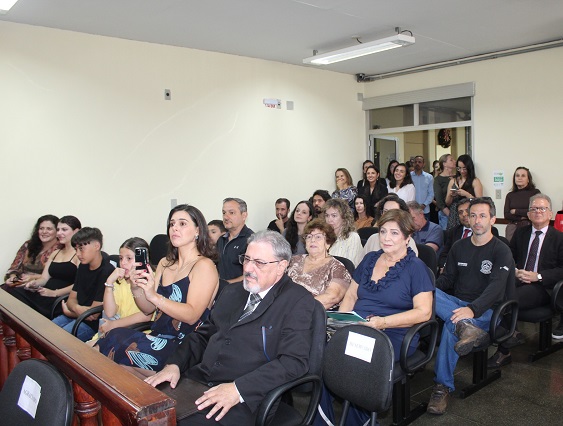 A solenidade reuniu autoridades, familiares, colegas de trabalho e representantes da comunidade. A mesa de honra foi composta pelo Juiz de Direito, Dr. Bruno Mendes Gonçalves Ville, diretor do Foro da Comarca de Três Pontas, pelo prefeito Luis Carlos da Silva e pelo presidente da Câmara Municipal, Myller Bueno de Andrade.