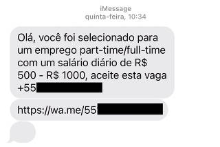 “Olá, você foi selecionado para um trabalho de meio período online, com salário diário de R$ 500 – R$ 1000. Entre em contato comigo pelo link…” Se você recebeu uma mensagem similar a esta, prometendo empregos remotos com alta remuneração diária, tome cuidado: provavelmente é uma tentativa de golpe.