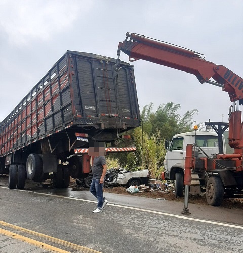 Caminhão tomba em cima de veículo dirigido por Alessandro Augusto. Ao contrário do que circulou em redes sociais, vítima não era de Três Pontas