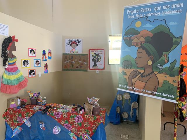 *EM Nossa Senhora Aparecida e EM Professor Vieira Campos – Moda e Adereços Tradicionais – turbantes, tecidos africanos como kente e capulana, colares e seus significados culturais.