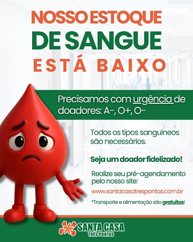 Histórias como essa se repetem todos os dias em vários hospitais do país, algumas com finais felizes, outras nem tanto. Por isso, a Santa Casa de Três Pontas faz um apelo: os estoques de sangue dos tipos A-, O+ e O- estão em níveis críticos e a reposição é urgente. “Ainda que a situação mais grave seja para esses grupos, todos os tipos sanguíneos são bem-vindos e necessários”, afirma a instituição de saúde.