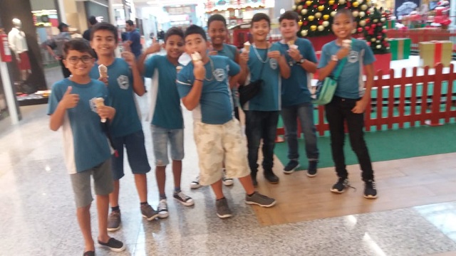 Alunos Vencedores de Campanha Ambiental promovida pelo Clube da Casa Nova Era, de TP, aproveitam a premiação para conhecer um shopping center