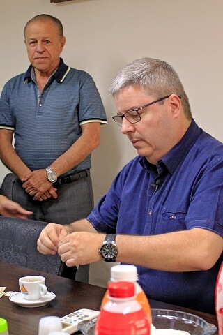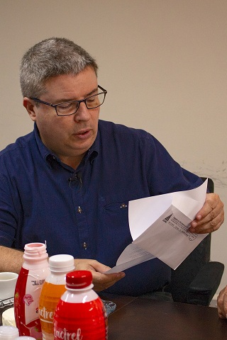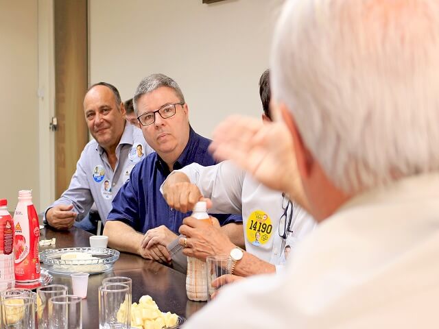- Candidato toma café em sala de reuniões da Cooperativa