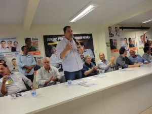 Após a conversa, o candidato se dirigiu ao Auditório “Juvenal Corrêa de Figueiredo” e se deparou com produtores rurais, empresários, prefeitos, ex-prefeitos, vereadores de vários municípios da região e ainda dezenas de outros apoiadores. Foi o último a se pronunciar e firmou o compromisso: “se tivermos que fazer uma única obra, esta obra será a terceira faixa da Rodovia MG-167. Minha pretensão é colocar em ordem as finanças e a partir daí retomar as obras. A mais urgente aqui, não há dúvidas, é a terceira pista; depois dela vamos tentar outras obras que também são importantes e necessárias”.