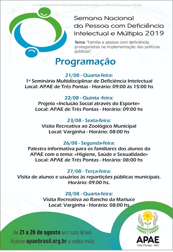 Confira abaixo a programação da Apae de Três Pontas e prestigie!