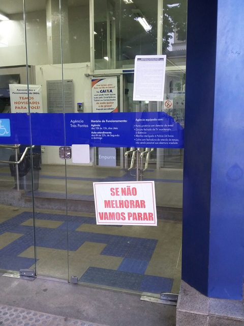 As agências bancárias de Três Pontas já expressam a tendência de greve. Cartazes foram fixados, servindo de alerta sobre a possível paralisação.