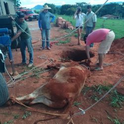 Boi cai em fossa de 5 metros de profundidade e tem que ser resgatado por Corpo de Bombeiros