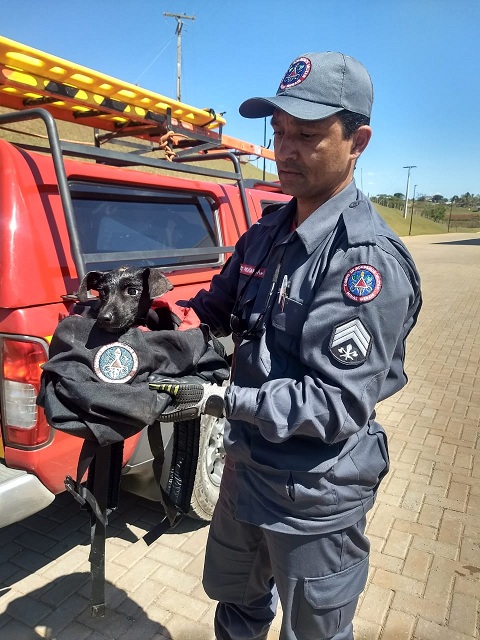 Bombeiros salvam cão preso em galeria do Porto Seco de Varginha