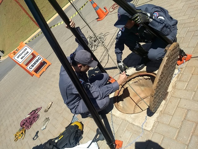Bombeiros salvam cão preso em galeria do Porto Seco de Varginha