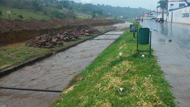 Chuva cai e enche córrego no centro de Três Pontas