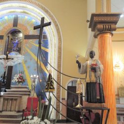 - Na primeira foto, dona Lia (à direita), que vai à Mina todo mês agradecer a cura do filho Willian. Na segunda foto, imagem do Beato Padre Victor no interior da Matriz d’Ajuda, em Três Pontas (MG)
