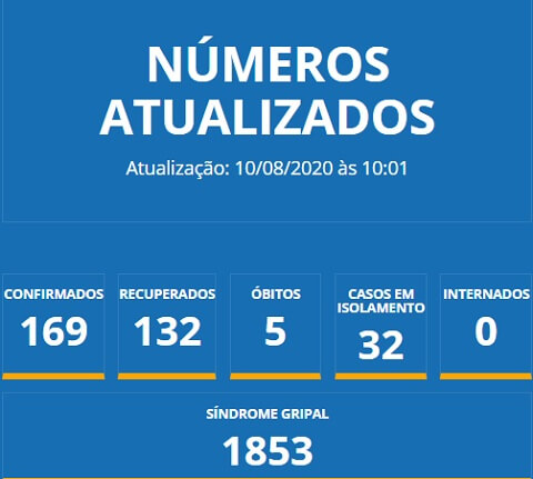 A Covid-19 fez cinco vítimas fatais na cidade: mulheres de 72, 43, 74, 47 anos e 66 anos. De acordo com as informações oficiais, elas possuíam uma ou mais comorbidades identificadas como hipertensão, hipertireoidismo, doença cardiovascular e doença renal.