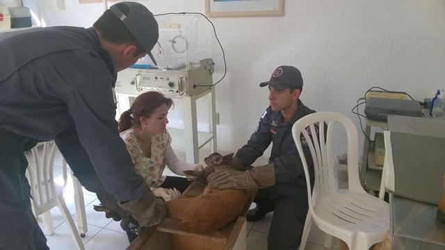 Em Varginha, Corpo de Bombeiros resgata filhote de Cervo em garagem