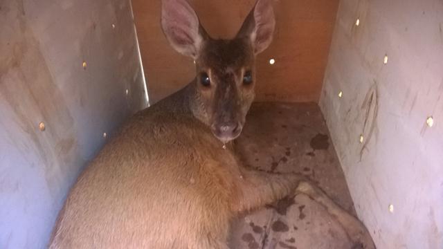 Em Varginha, Corpo de Bombeiros resgata filhote de Cervo em garagem