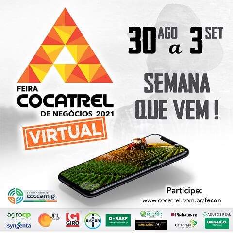 Novas oportunidades de negócio estão chegando com a Fecon 2021 – Feira Cocatrel de Negócios, que acontece de 30 de agosto a 3 de setembro. Os cooperados poderão aproveitar ótimos preços e condições especiais de pagamentos durante a feira, que é 100% digital e pode ser acessada pelo www.cocatrel.com.br/fecon. Para quem preferir ser atendido pessoalmente, todas as lojas da Cocatrel estarão aptas para receber, cumprindo os protocolos de segurança para evitar a proliferação do coronavírus.