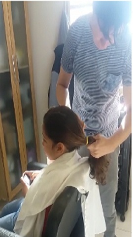 - Doador brinca com a mecha que será encaminhada para Barretos (SP)