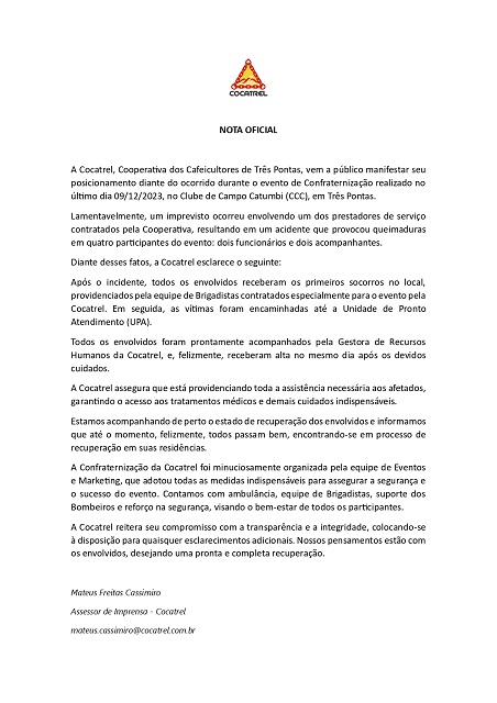 As vítimas, na hora do acidente, contaram – além do CB – com o suporte da Polícia Militar, Samu, Guarda Civil Municipal e populares.