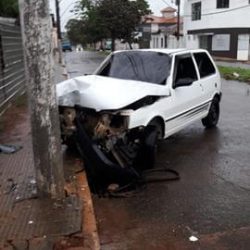 O motorista que trafegava sentido Centro perdeu o controle de direção e atingiu um poste de iluminação pública. De acordo com a Polícia Militar, o condutor estava sozinho na hora do incidente, não apresentava sinais de embriagues e não sofreu ferimentos.