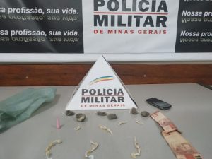 A guarnição policial arrecadou a sacola que continha 25 pedras de crack, 06 buchas de maconha, 01 pino de cocaína, 01 aparelho celular e R$ 20.
