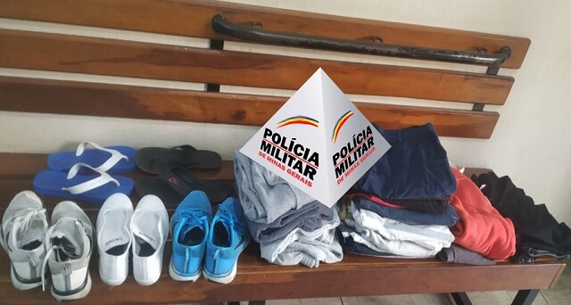 Calçados e roupas furtados de residência na Rua Afonso Pena, Centro de Três Pontas (Crédito: PMMG)