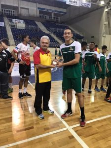 O trespontano Yan Moreira e o delegado do campeonato mineiro de Clubes de 2017 durante entrega de prêmio de jogador destaque da partida