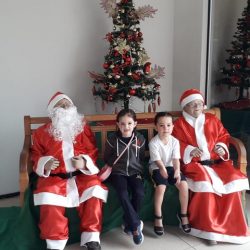 A recepção do TOC ganhou uma divertida decoração de Natal. O personagem mais célebre desta época do ano, o Papai Noel, está lá – acompanhado da também simpática Mamãe Noel. O casal chama a atenção e a garotada não resiste à aproximação. As crianças chegam, tocam e até puxam uma conversinha com os bonecos. A fofura, a curiosidade, a interatividade, a imaginação dos pequenos contagiam e um registro fotográfico se torna inevitável.