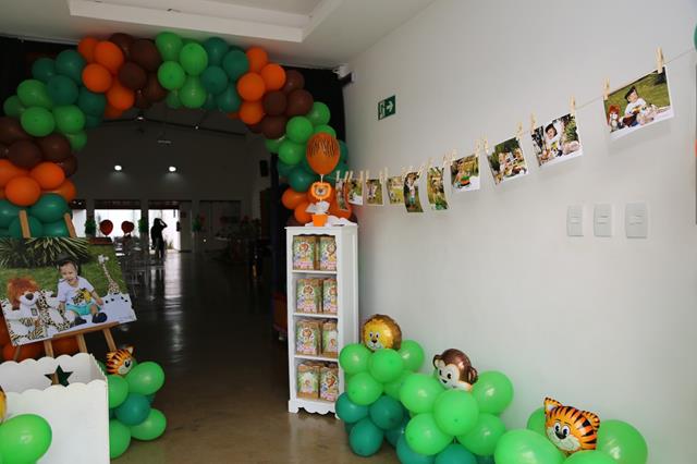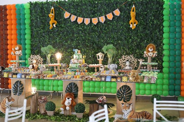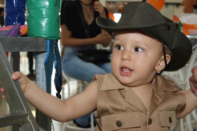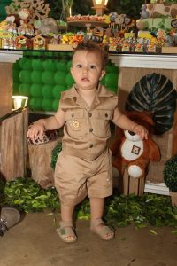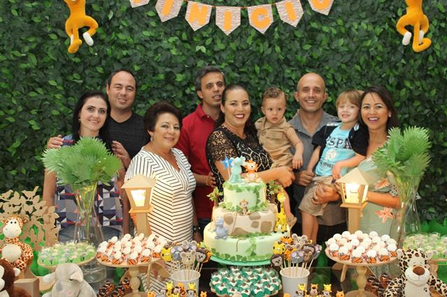 Vinícius, apesar de ainda pequenino, é destemido e decidiu passar seu primeiro aniversário no meio de uma selva. Lá, havia muitos animais: leões, tigres, elefantes, girafas, macacos e até hipopótamos. Vinícius é a mais pura esperteza e levou algumas pessoas muito amadas com ele, afinal o dia estava propício para compartilhar descobertas. Na aventura foram os pais Keyre e André, vários parentes e, claro, os amiguinhos. Todos se divertiram cercados de muito verde, carinho e atenção!